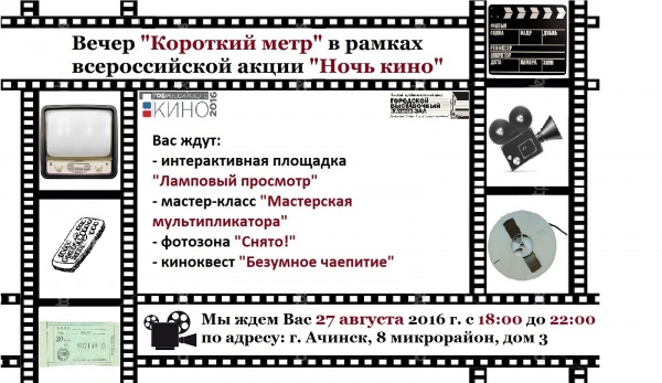27 августа в Ачинске состоится всероссийская акция «Ночь кино», которая пройдёт сразу на четырёх площадках города!