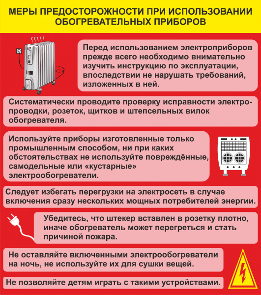 МЕРЫ ПРЕДОСТОРОЖНОСТИ ПРИ ИСПОЛЬЗОВАНИИ ОБОГРЕВАТЕЛЬНЫХ ПРИБОРОВ