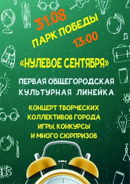 31 августа в Парке Победы состоится общегородская культурная линейка. Школьники смогут весело проводить лето, а их родители — немного отвлечься от суеты перед новым учебным годом. Начало программы в 13.00.