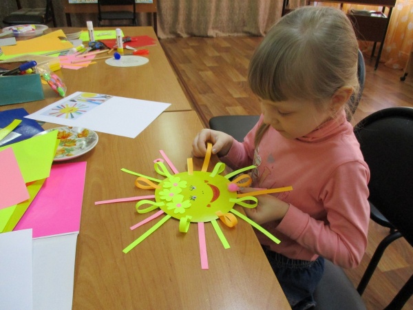 Тема нашла отражение в поделках «Солнышко лучистое» и «Барыня-масленица». Каждый мог сделать весеннюю «бабу» с полукруглым блином и вьющимися волосами, кто-то мастерил чучело из картона, а у кого-то получились очаровательные озорные «солнышки».