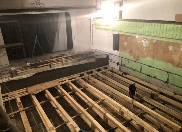 В зрительном зале меняются полы, потолки, проводится ремонт авансцены. В санузлах уже приступили к отделочным работам. Эти помещения подлежат полной реконструкции.
