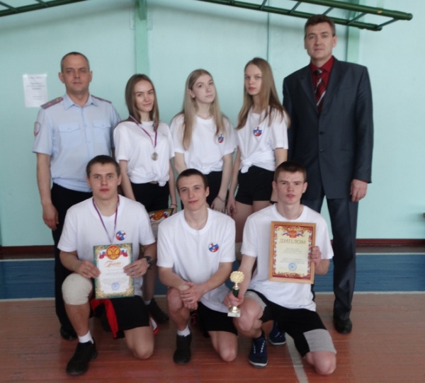 7 команд полицейских классов, в состав которых вошли 3 девушки и 3 парня, встретились на соревнования, посвященных 300-летию полиции и приближающемуся Дню победы.