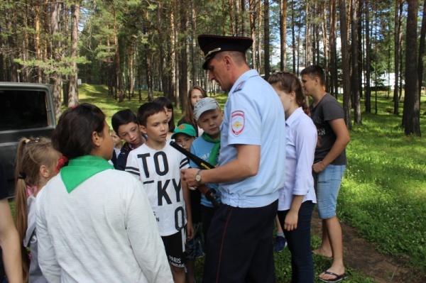 Также у юных ачинцев  была уникальная возможность познакомиться со спецтехникой и оружием сотрудников органов правопорядка. Ребята с удовольствием фотографировались в служебном транспорте полицейских, делали с ними селфи, примеряли на себе каски и бронежилеты, знакомились с принципом работы металлоискателя. Вожатые отрядов тоже не упустили возможности подержать в руках настоящую винтовку.