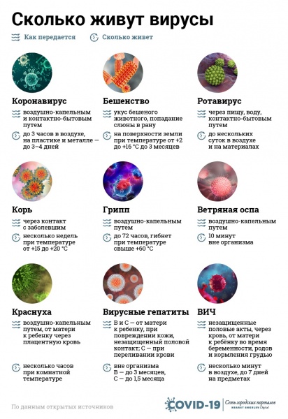Сколько живет: в воздухе и на поверхностях остаётся несколько недель при температуре от +15 до +20 °C. При комнатной температуре от 2 часов до 2 суток, при этом вирус чувствителен к солнечному свету.