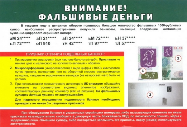 - если вы обнаружили купюру сомнительного качества, не пытайтесь ее сбыть, это уже преступление, немедленно обратитесь в полицию;