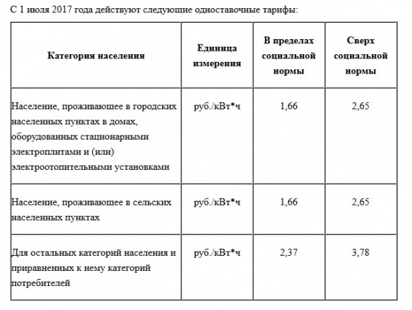 Тарифы для населения и приравненных к нему категорий установлены приказом Региональной энергетической комиссии Красноярского края от 20.12.2016 г. №644-п «Об установлении тарифов на электрическую энергию, отпускаемую ПАО «Красноярскэнергосбыт».