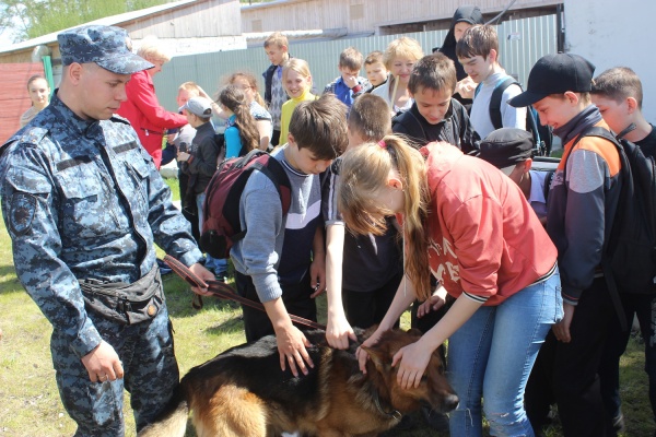 Приятным сюрпризом для детей стало продолжение знакомства с полицией. Вместе с наставниками в погонах они побывали на дрессировочной площадке кинологической группы. Инспекторы со своими четвероногими напарниками продемонстрировали общий курс дрессировки и прохождение полосы препятствий.