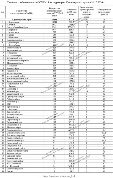 В последний день октября COVID подтвержден почти у 300 человек