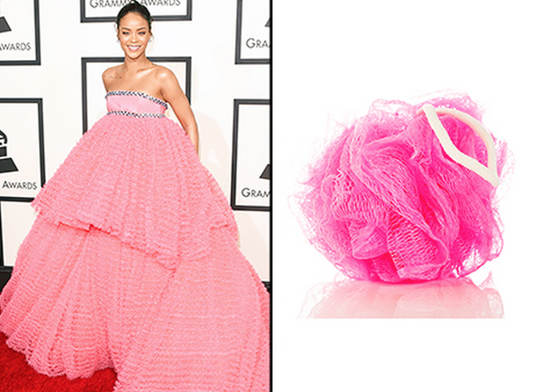 Пользователи интернета сравнили пышное розовое платье, в котором американская певица Рианна появилась на церемонии вручения музыкальной премии «Грэмми» с мочалкой, тортом и кукольным нарядом. Об этом сообщает BuzzFeed.