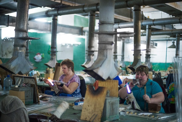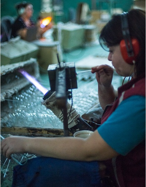 Работают на производстве, в основном, женщины — мужчинам для этого ремесла не хватает терпения. Обычно в стеклодувном цехе трудится 17-20 человек. Большинство пришли сюда сразу после окончания школы.