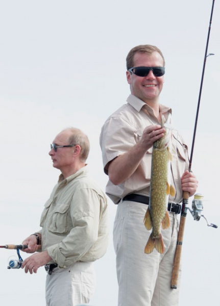 Если Медведев — любитель бадминтона, то Путин предпочитает рыбалку. В августе 2011 года они вместе прошли по Волге на катерах, порыбачили на спиннинг и сделали несколько подводных фотоснимков.