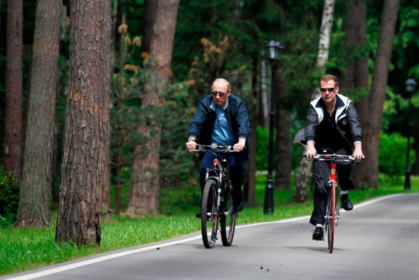 В самом начале лета 2011 года председатель правительства Путин приехал в подмосковную резиденцию Дмитрия Медведева «Горки». Здесь они снова поиграли в бадминтон. Поскольку во время игры оба просто перебрасывали волан через сетку, Медведев назвал происходящее «дамским бадминтоном». Ракетки сменили на велосипеды. Для спортивной прогулки по аллеям Медведев предпочел переделанный для города шоссейный велосипед. Путин катался на горном.