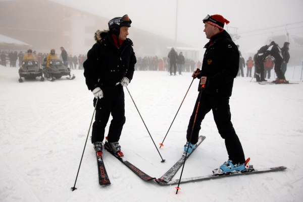 Длинные новогодние праздники — не повод для бесконечных застолий. В январе 2010 года Путин и Медведев продемонстрировали это на личном примере. На сочинском горнолыжном курорте «Красная поляна» они несколько раз спускались по будущей олимпийской трассе. А затем преодолели ее на снегоходах. Вместе зашли в кафе и пообщались за чашкой зеленого чая.