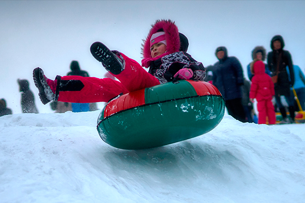 Я специально сходил на горку и понаблюдал за процессом. Примерно в половине случаев родители катаются на «ватрушках» вместе с детьми. На горе целая толпа маленьких и взрослых, поэтому найти идеальную стартовую позицию невозможно. Чтобы не упустить юркий транспорт, родитель, как правило, прыжком занимает место в «ватрушке», а ребенок быстро цепляется сзади.
