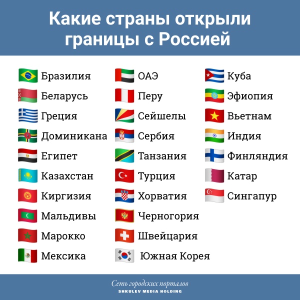 На данный момент Россия возобновила авиасообщение с 27 странами. Однако в некоторых случаях открытие границ условное: не все авиаперевозчики готовы возобновлять рейсы по указанным направлениям.
