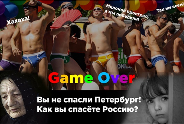 Если же наркоманы и геи смогут отнять у виртуального депутата все 100 очков здоровья, игра прекращается и появляется фотография гей-парада, сопровождающаяся надписями «Вы не спасли Петербург, как вы спасете Россию» и «Милонов проиграл, а мы победили».