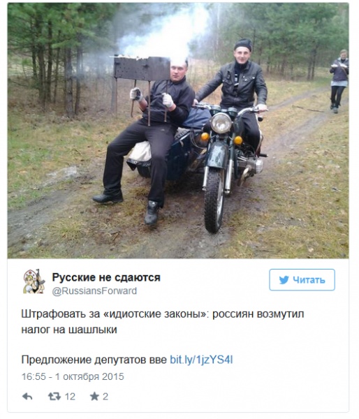 Депутат заксобрания Ленинградской области Владимир Петров предложил ввести налог на шашлык. Парламентарий хочет обязать граждан платить 500 рублей раз в квартал за возможность развести костер и установить мангал. Люди, которые придут на природу, чтобы собрать лекарственные травы, заготовить древесину, поохотиться или помолиться, платить налог не будут. Предполагается, что «лесной сбор» позволит сократить расходы муниципалитетов на уборку территории от оставленного отдыхающими мусора.